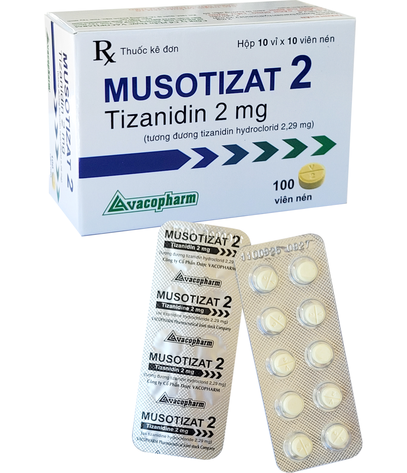 Thành phần dược chất: Tizanidine 2,0 mg (tương đương tizanidine hydrochloride 2,29 mg)